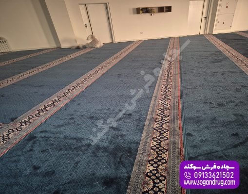 سجاده فرش تشریفاتی شاکر آبی از دسته سجاده های بسیار با کیفیت سوگند است