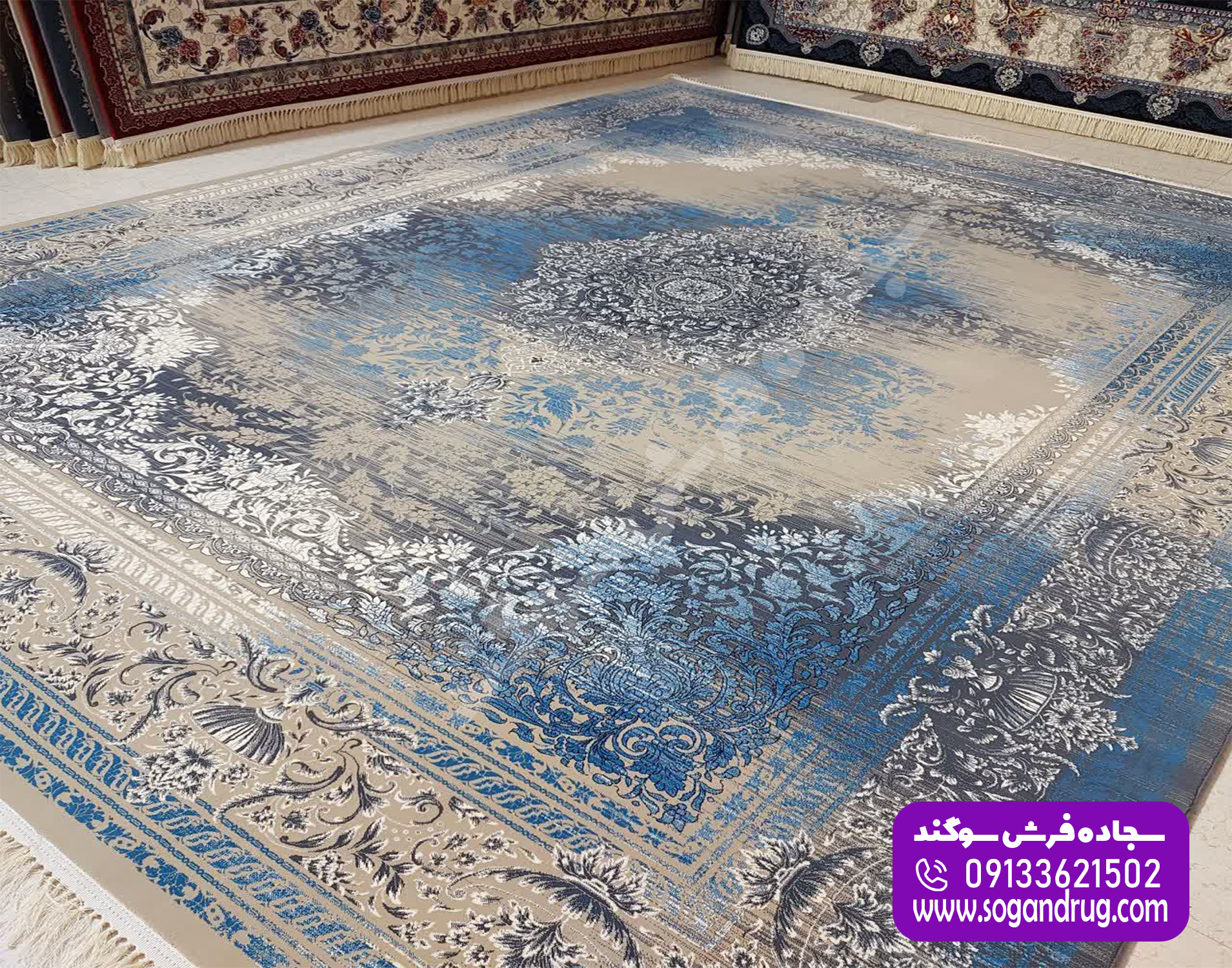 فرش طرح وینتیج آبی، محصولی اورجینال و درجه یک از کارخانه فرش سوگند است