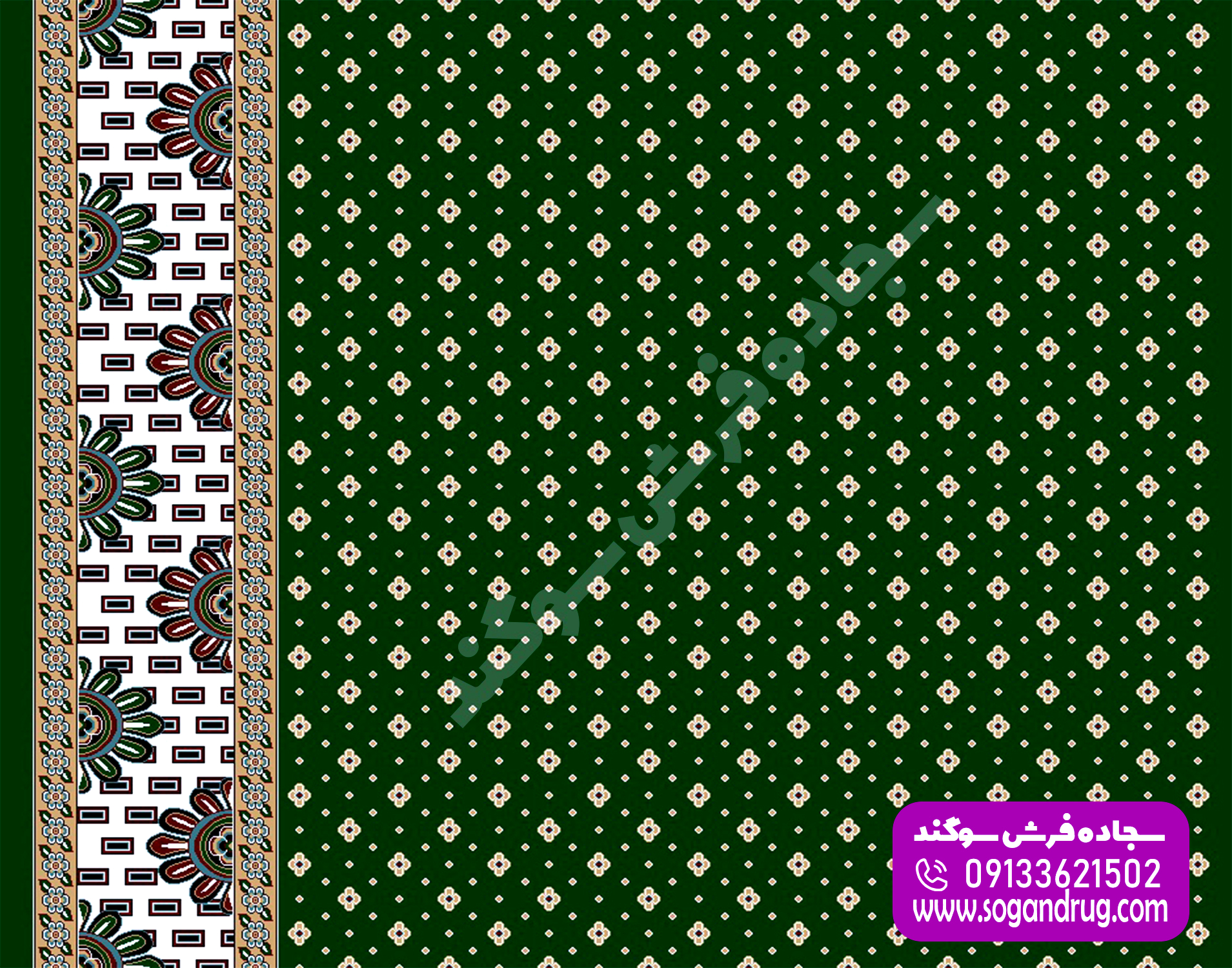 سجاده فرش تشریفاتی طرح نگین زمرد سبز نمونهای منحصر به فرد بدون محراب است